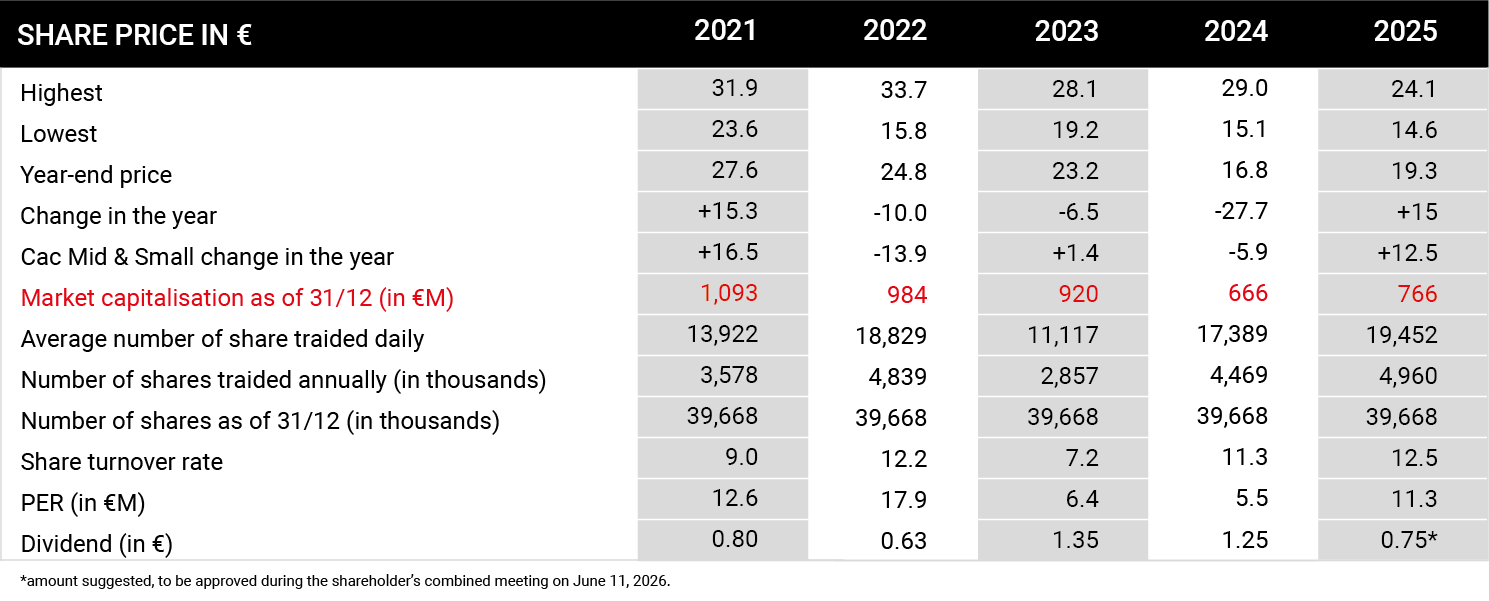 As of December 31, 2023, the share capital amounted to €39,668,399, allocated into 39,668,399 shares with a par value of €1, all in the same category, fully paid up.