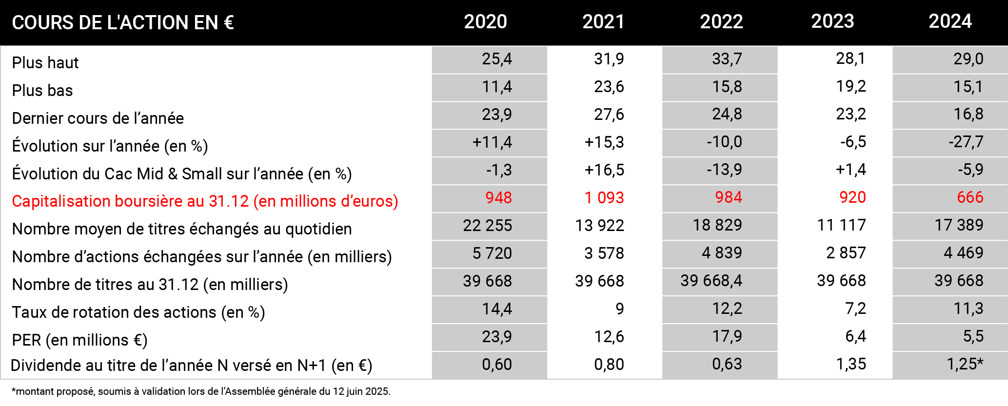 Au 31 décembre 2023, le capital social s’établit à 39 668 399 euros se décomposant en 39 668 399 actions d’une valeur nominale de 1 euro, toutes de même catégorie, intégralement libérées.